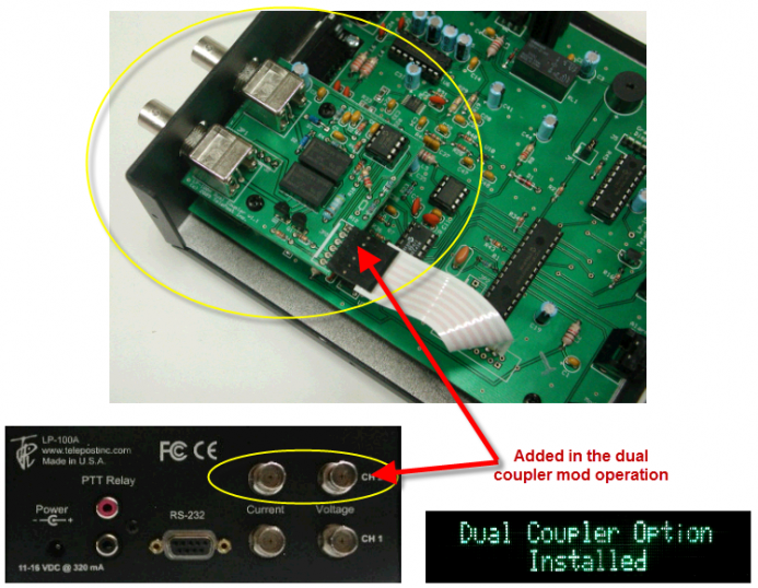 Extending the LP100 to serve dual rig duty The LP-100a in the default configuration services one coupler. However, Larry N8LP has added provisions where a second coupler can be serviced by the same LP-100a control head. This brings the ability of the control head to read power and swr for two amps - with automatic switching based on a power sensor. The LP-100a serves a very important function in the SO2R setup because the amps I will be using do not have SWR protection internally. I will need to rely on the LP-100a to ensure the amps are pushed off line in the event something happens to the antenna. And with an antenna configutation this complex, the chances of that are much higher than normal. The LP-100a dual coupler mod includes the internal board, an additional coupler and the coax connections. The coupler mod is avilable as a kit, as a service by N8LP and as an option at the time of initial order. For more info on the LP100 Dual Coupler: http://www.telepostinc.com/Dual_coupler.html