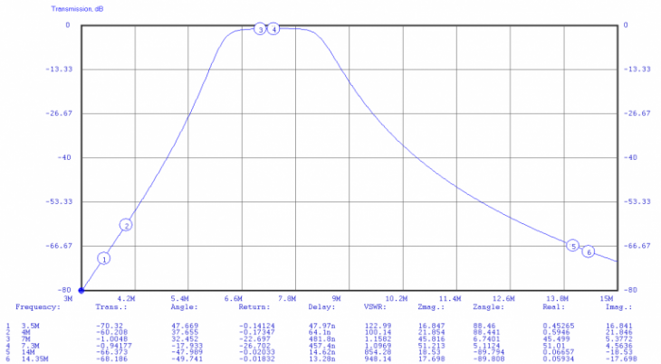 To get an idea of the attenuation the BPF preselector will offer in our SO2R configuration, the fast method is to use the excellent Elsie filter simulation program. FT-2000 Preselector Cross-Band Attenuation Simulations The implementation in the 2K is a 7-pole LPF section and 7-pole HPF section in cascade. A typical section looks like this: