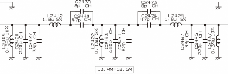 Main receiver preselector ranges, specified in the schematic are: Band | Marked Range | 1 | 1.7-2.1 MHz | 2 | 3.4-5.0 MHz | 3 | 6.9-7.5 MHz | 4 | 9.9-10.6 MHz | 5 | 13.9-18.5 MHz | 6 | 18.5-24.5 MHz | 7 | 24.5-32 MHz | 8 | 47-56 MHz |
